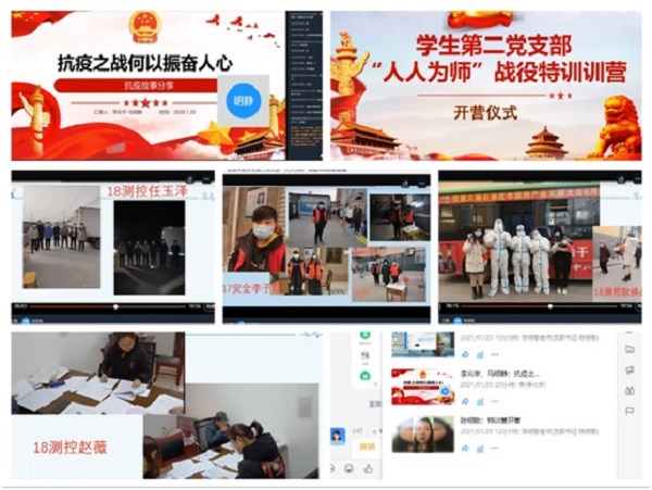 当前,河北省石家庄市、邢台市部分地区出现多例新冠肺炎确诊病例,防控工作面临严峻形势。为进一步发扬“党有号召、团有行动”的光荣传统,为响应新葡萄8883官网AMG“党旗飘扬”等系列党团活动,用实际行动助力疫情防控阻击战,学生第二党支部经过前期部署与筹备,于1月20日开启“人人为师”战疫特训助力自我提升!支部书记陈明敬在线主持开营仪式,质监学院党委书记郝真鸣、党委宣传委员李红莲、党委纪委副书记宋红强参加开营仪式,鼓励党员同志和积极分子以不同的形式、方式参与到抗击疫情的志愿活动中为防护疫情贡献自己的青春力量。